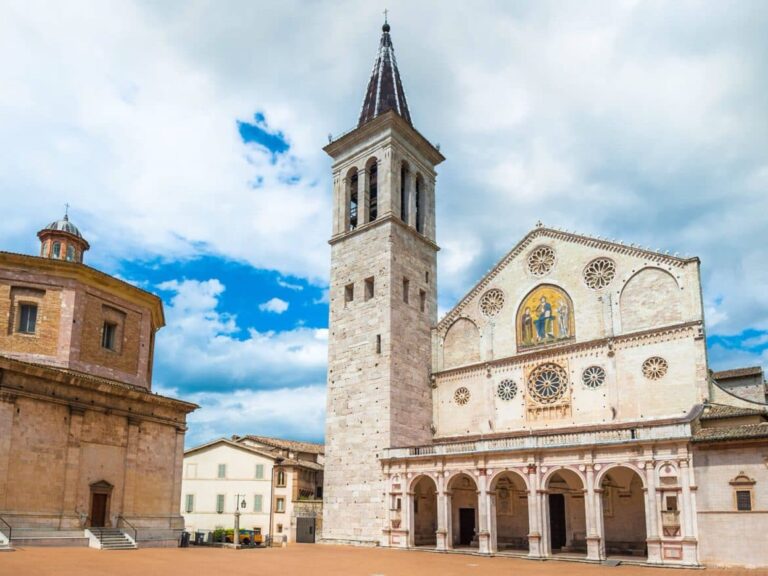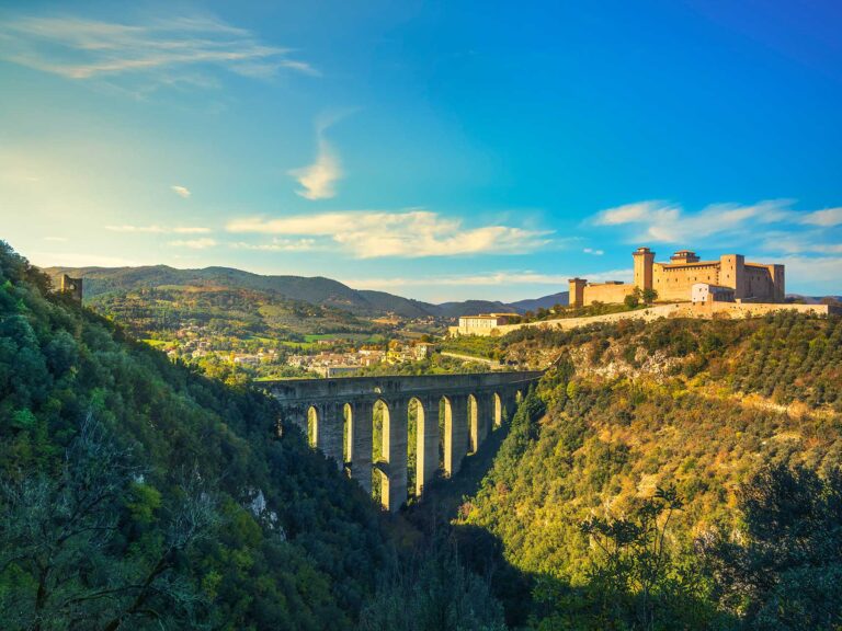 Spoleto è una città umbra situata a circa 40 km a sud di Perugia. Famosa per il Festival dei Due Mondi, offre attrazioni storiche come il Duomo di Spoleto, il Ponte delle Torri, la Rocca Albornoziana, il Teatro Romano e la Chiesa di San Salvatore (Patrimonio UNESCO). Da non perdere una passeggiata lungo il Giro dei Condotti per panorami mozzafiato.